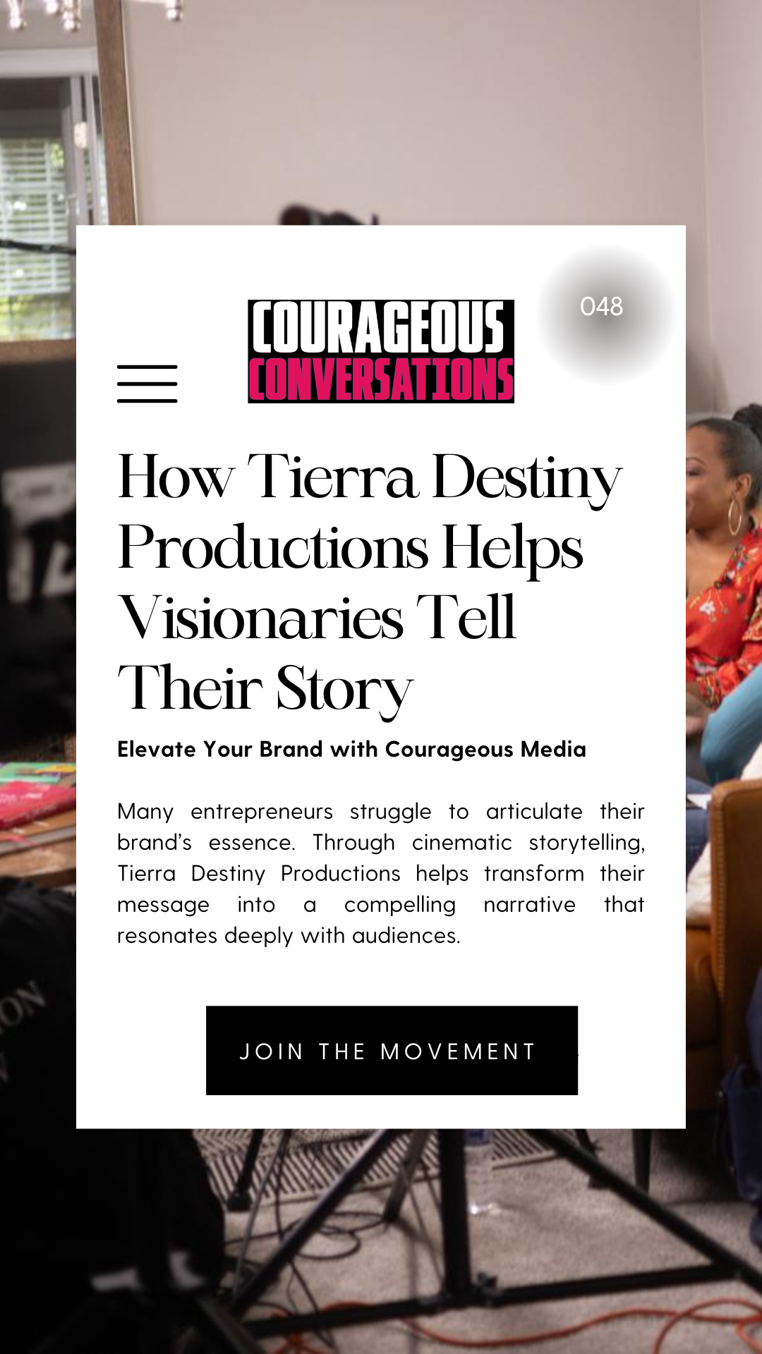 A Safe Space for Courageous ConversationsJoin The Movement"Tierra has a gift for asking the right questions: the ones that bring out your truth and your power. Our Interview felt like a conversation with someone who truly sees you. It wasn't just about business; it was about purpose, authenticity, and impact This experience helped me gain clarity on my own message and how to share it with the world."